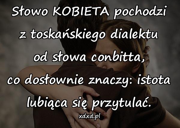 Słowo KOBIETA pochodzi z toskańskiego dialektu od słowa conbitta, co dosłownie znaczy: istota lubiąca się przytulać.