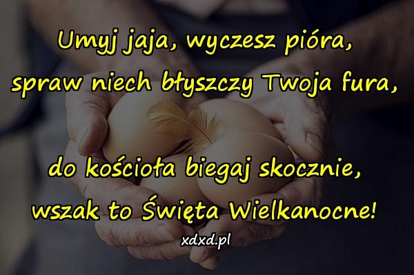 Umyj jaja, wyczesz pióra, spraw niech błyszczy Twoja fura, do kościoła biegaj skocznie, wszak to Święta Wielkanocne!