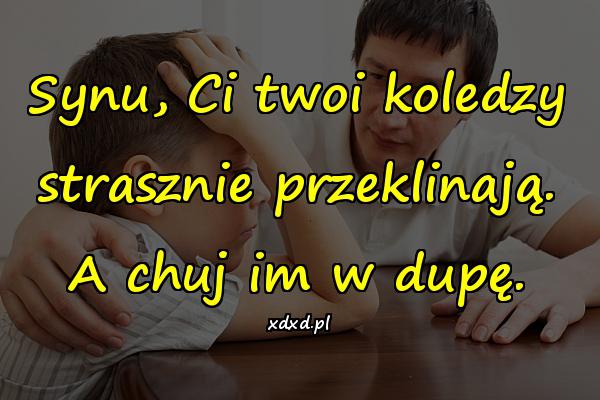 Synu, Ci twoi koledzy strasznie przeklinają. A chuj im w dupę.