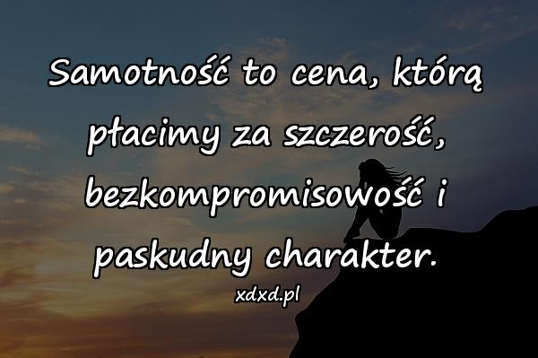 Samotność to cena, którą płacimy za szczerość, bezkompromisowość i paskudny charakter.