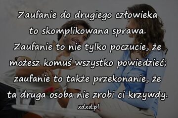 Zaufanie do drugiego człowieka to skomplikowana sprawa. Zaufanie to nie tylko poczucie, że możesz komuś wszystko powiedzieć; zaufanie to także przekonanie, że ta druga osoba...