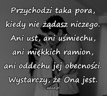Przychodzi taka pora, kiedy nie żądasz niczego. Ani ust, ani uśmiechu, ani miękkich ramion, ani oddechu jej obecności. Wystarczy, że Ona jest.