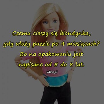 Czemu cieszy się blondynka, gdy ułoży puzzle po 4 miesiącach? Bo na opakowaniu jest napisane od 5 do 8 lat.
