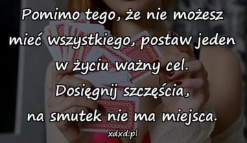 Pomimo tego, że nie możesz mieć wszystkiego, postaw jeden w życiu ważny cel. Dosięgnij szczęścia, na smutek nie ma miejsca.