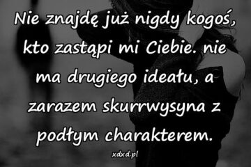 Nie znajdę już nigdy kogoś, kto zastąpi mi Ciebie. nie ma drugiego ideału, a zarazem skurrwysyna z podłym charakterem.