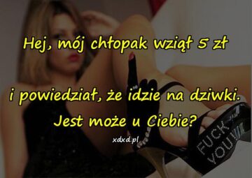 Hej, mój chłopak wziął 5 zł i powiedział, że idzie na dziwki. Jest może u Ciebie?