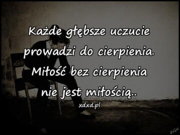 Każde głębsze uczucie prowadzi do cierpienia. Miłość bez cierpienia nie jest miłością..