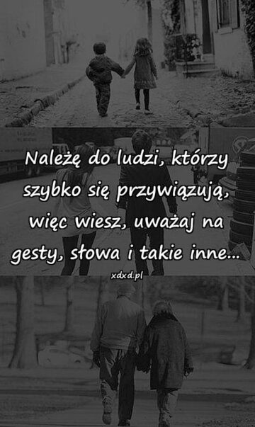 843 Cytaty o życiuNależę do ludzi, którzy szybko się przywiązująNależę do ludzi, którzy szybko się przywiązują, więc wiesz, uważaj na gesty, słowa i takie inne…