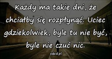 Każdy ma takie dni, że chciałby się rozpłynąć. Uciec gdziekolwiek, byle tu nie być, byle nie czuć nic.