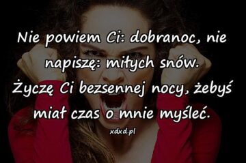 Nie powiem Ci: dobranoc, nie napiszę: miłych snów. Życzę Ci bezsennej nocy, żebyś miał czas o mnie myśleć.