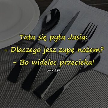 Tata się pyta Jasia: – Dlaczego jesz zupę nożem? – Bo widelec przecieka!