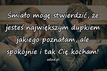 Śmiało mogę stwierdzić, że jesteś największym dupkiem jakiego poznałam, ale spokojnie i tak Cię kocham!