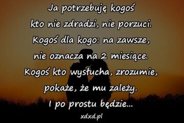 Ja potrzebuję kogoś kto nie zdradzi, nie porzuci. Kogoś dla kogo: na zawsze, nie oznacza na 2 miesiące. Kogoś kto wysłucha, zrozumie, pokaże, że mu...