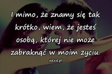 I mimo, że znamy się tak krótko, wiem, że jesteś osobą, której nie może zabraknąć w moim życiu.