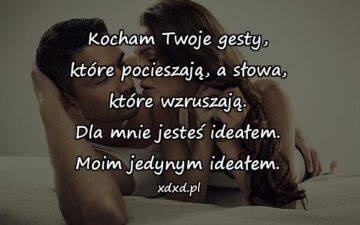 Kocham Twoje gesty, które pocieszają, a słowa, które wzruszają. Dla mnie jesteś ideałem. Moim jedynym ideałem.