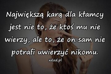 Największą karą dla kłamcy jest nie to, że ktoś mu nie wierzy, ale to, że on sam nie potrafi uwierzyć nikomu.
