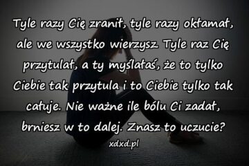 Tyle razy Cię zranił, tyle razy okłamał, ale we wszystko wierzysz. Tyle raz Cię przytulał, a ty myślałaś, że to tylko Ciebie tak przytula i...