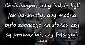 Chciałabym, żeby ludzie byli jak banknoty, aby można było zobaczyć na słońcu czy są prawdziwi, czy fałszywi.