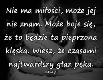Nie ma miłości, może jej nie znam. Może boje się, że to będzie ta pieprzona klęska. Wiesz, że czasami najtwardszy głaz pęka.