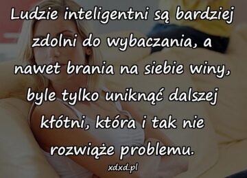 Ludzie inteligentni są bardziej zdolni do wybaczania, a nawet brania na siebie winy, byle tylko uniknąć dalszej kłótni, która i tak nie rozwiąże problemu.