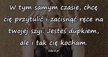 W tym samym czasie, chcę cię przytulić i zacisnąć ręce na twojej szyi. Jesteś dupkiem, ale i tak cię kocham.