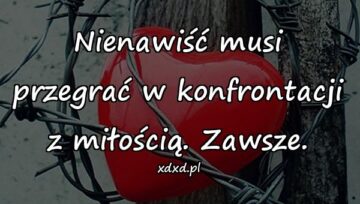 817 Cytaty o miłościNienawiść musi przegraćNienawiść musi przegrać w konfrontacji z miłością. Zawsze.