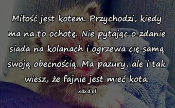 Miłość jest kotem. Przychodzi, kiedy ma na to ochotę. Nie pytając o zdanie siada na kolanach i ogrzewa cię samą swoją obecnością. Ma pazury, ale...