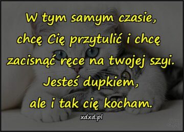 W tym samym czasie, chcę Cię przytulić i chcę zacisnąć ręce na twojej szyi. Jesteś dupkiem, ale i tak cię kocham.