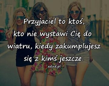 Przyjaciel to ktoś, kto nie wystawi Cię do wiatru, kiedy zakumplujesz się z kimś jeszcze.