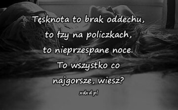 Tęsknota to brak oddechu, to łzy na policzkach, to nieprzespane noce. To wszystko co najgorsze, wiesz?