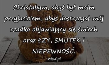 Chciałabym, abyś był moim przyjacielem, abyś dostrzegał mój rzadko objawiający się śmiech oraz ŁZY, SMUTEK i NIEPEWNOŚĆ.