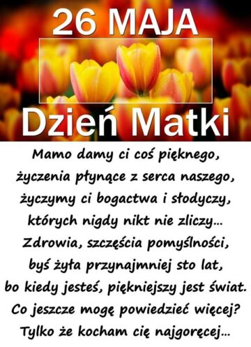 Żyj mamusiu długie lata, niech Ci anioł wieniec splata, niech Ci splata z białej róży, żyj mamusiu jak najdłużej!