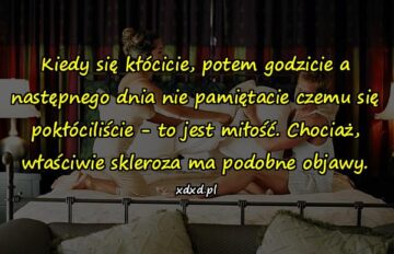 Kiedy się kłócicie, potem godzicie a następnego dnia nie pamiętacie czemu się pokłóciliście – to jest miłość. Chociaż, właściwie skleroza ma podobne objawy.