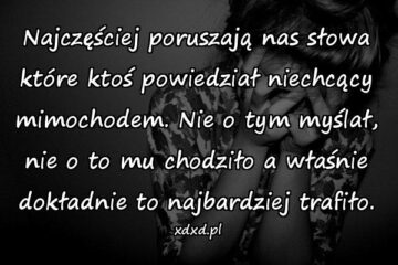 Najczęściej poruszają nas słowa które ktoś powiedział niechcący mimochodem. Nie o tym myślał, nie o to mu chodziło a właśnie dokładnie to najbardziej trafiło.
