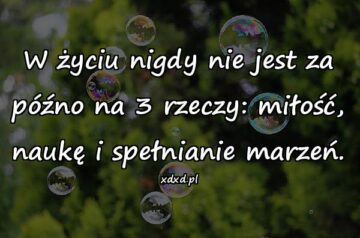 W życiu nigdy nie jest za późno na 3 rzeczy: miłość, naukę i spełnianie marzeń.