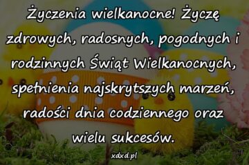 Życzenia wielkanocne! Życzę zdrowych, radosnych, pogodnych i rodzinnych Świąt Wielkanocnych, spełnienia najskrytszych marzeń, radości dnia codziennego oraz wielu sukcesów.