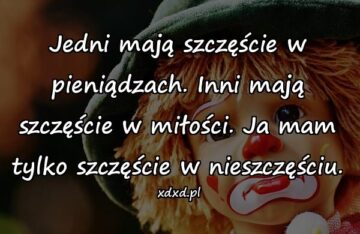 Jedni mają szczęście w pieniądzach. Inni mają szczęście w miłości. Ja mam tylko szczęście w nieszczęściu.