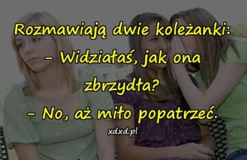 Rozmawiają dwie koleżanki: – Widziałaś, jak ona zbrzydła? – No, aż miło popatrzeć.