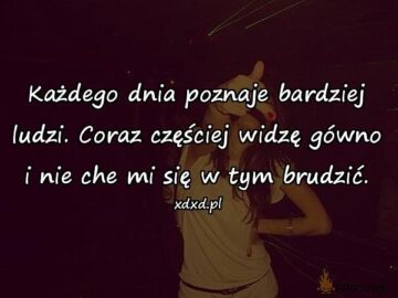 Każdego dnia poznaje bardziej ludzi. Coraz częściej widzę gówno i nie che mi się w tym brudzić.