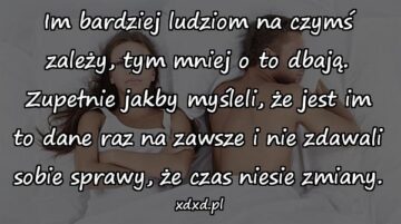 Im bardziej ludziom na czymś zależy, tym mniej o to dbają. Zupełnie jakby myśleli, że jest im to dane raz na zawsze i nie zdawali...