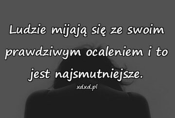 829 Cytaty o życiuLudzie mijają się ze swoim ocaleniemLudzie mijają się ze swoim prawdziwym ocaleniem i to jest najsmutniejsze.