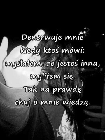 Denerwuje mnie kiedy ktoś mówi: myślałem, że jesteś inna, myliłem się. Tak na prawdę chuj o mnie wiedzą.
