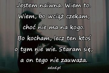 Jestem naiwna. Wiem to. Wiem, bo wciąż czekam, choć nie ma na kogo. Bo kocham, lecz ten ktoś o tym nie wie. Staram się, a...
