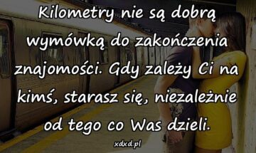 Kilometry nie są dobrą wymówką do zakończenia znajomości. Gdy zależy Ci na kimś, starasz się, niezależnie od tego co Was dzieli.