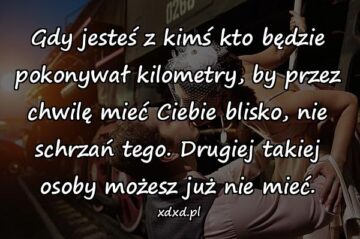 Gdy jesteś z kimś kto będzie pokonywał kilometry, by przez chwilę mieć Ciebie blisko, nie schrzań tego. Drugiej takiej osoby możesz już nie mieć.