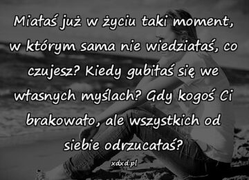Miałaś już w życiu taki moment, w którym sama nie wiedziałaś, co czujesz? Kiedy gubiłaś się we własnych myślach? Gdy kogoś Ci brakowało, ale wszystkich...
