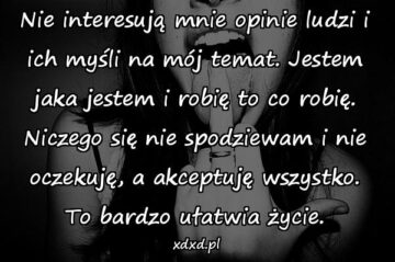 Nie interesują mnie opinie ludzi i ich myśli na mój temat. Jestem jaka jestem i robię to co robię. Niczego się nie spodziewam i nie...