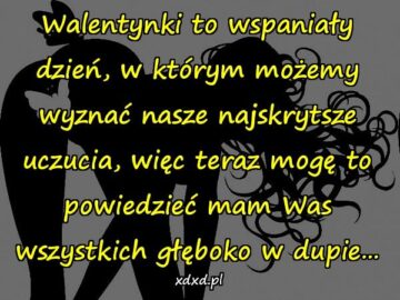 Walentynki to wspaniały dzień, w którym możemy wyznać nasze najskrytsze uczucia, więc teraz mogę to powiedzieć mam Was wszystkich głęboko w dupie…