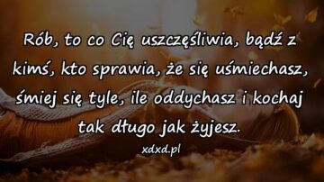 Rób, to co Cię uszczęśliwia, bądź z kimś, kto sprawia, że się uśmiechasz, śmiej się tyle, ile oddychasz i kochaj tak długo jak żyjesz.
