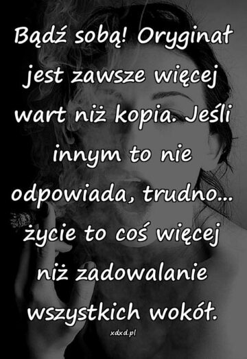 Bądź sobą! Oryginał jest zawsze więcej wart niż kopia. Jeśli innym to nie odpowiada, trudno… życie to coś więcej niż zadowalanie wszystkich wokół.